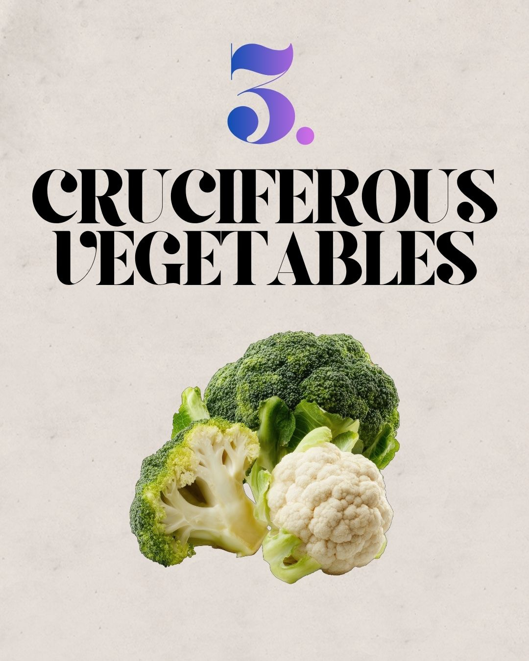 🥦 Cruciferous vegetables (broccoli, cauliflower, Brussels sprouts):\ contain compounds that help the body fight cancer at the cellular level.